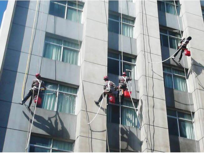 高空外牆清洗之外牆石(shí)材清洗有哪些注意(yì)事項?外牆清洗公司惠州展宏告訴您:不可亂用非中性清潔劑,為求(qiú)快(kuài)速清潔效果,一般清潔劑均含有酸堿性,故若長時間使用不明成份的清潔劑(jì),將會使石材表麵(miàn)光澤盡失,且因非中性(xìng)藥劑的殘留也是日後產生石材病變的主(zhǔ)因。防護劑的品質一定要特別注意(yì),施作後一定要能維持石材的透氣性及防水性、防汙性。決不可使用(yòng)來路不(bú)明的防護劑,以(yǐ)免(miǎn)不但達不到(dào)防護效果,反而增加了石材保養的困擾。